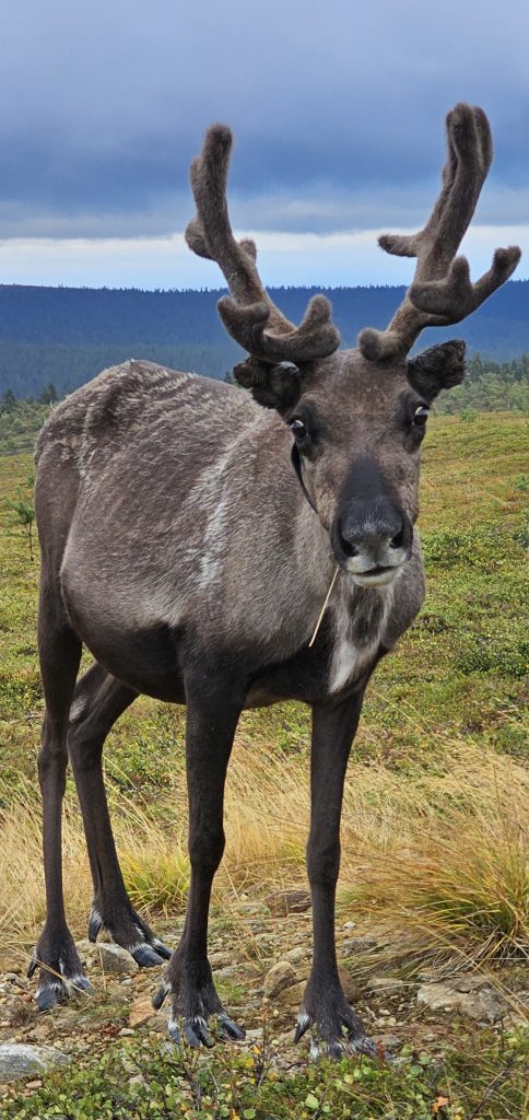 Es war vielleicht nicht ganz so magisch wie mein letzter magischer Moment am Grøtfjord, aber trotzdem ein ganz besonderer Augenblick: Ein Rentier-Muttertier mit ihrem Jungtier. Ich stand auf dem Aussichtsturm am Aussichtspunkt Kaunispää bei Saariselkä in Finnland und ließ meinen Blick über die weite Umgebung schweifen. In der Ferne entdeckte ich zwei Rentiere, die ruhig grasten.